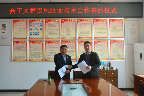 麻豆 项宏发教授和楚汉风纸业有限公司法人张彬代表校企双方签署技术开发合作协议。