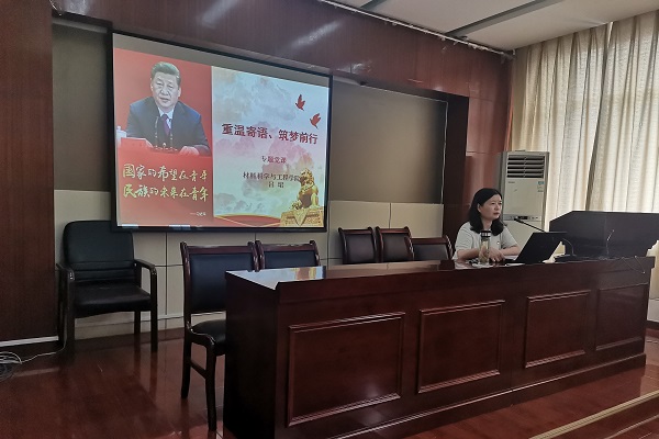 《重温寄语、筑梦前行》专题党课在材料楼601报告厅开讲。学院党委书记吕珺结合习近平总书记对青年的寄语以及研究生学习与工作实际,为学院2019级全体研究生党员上专题党课。