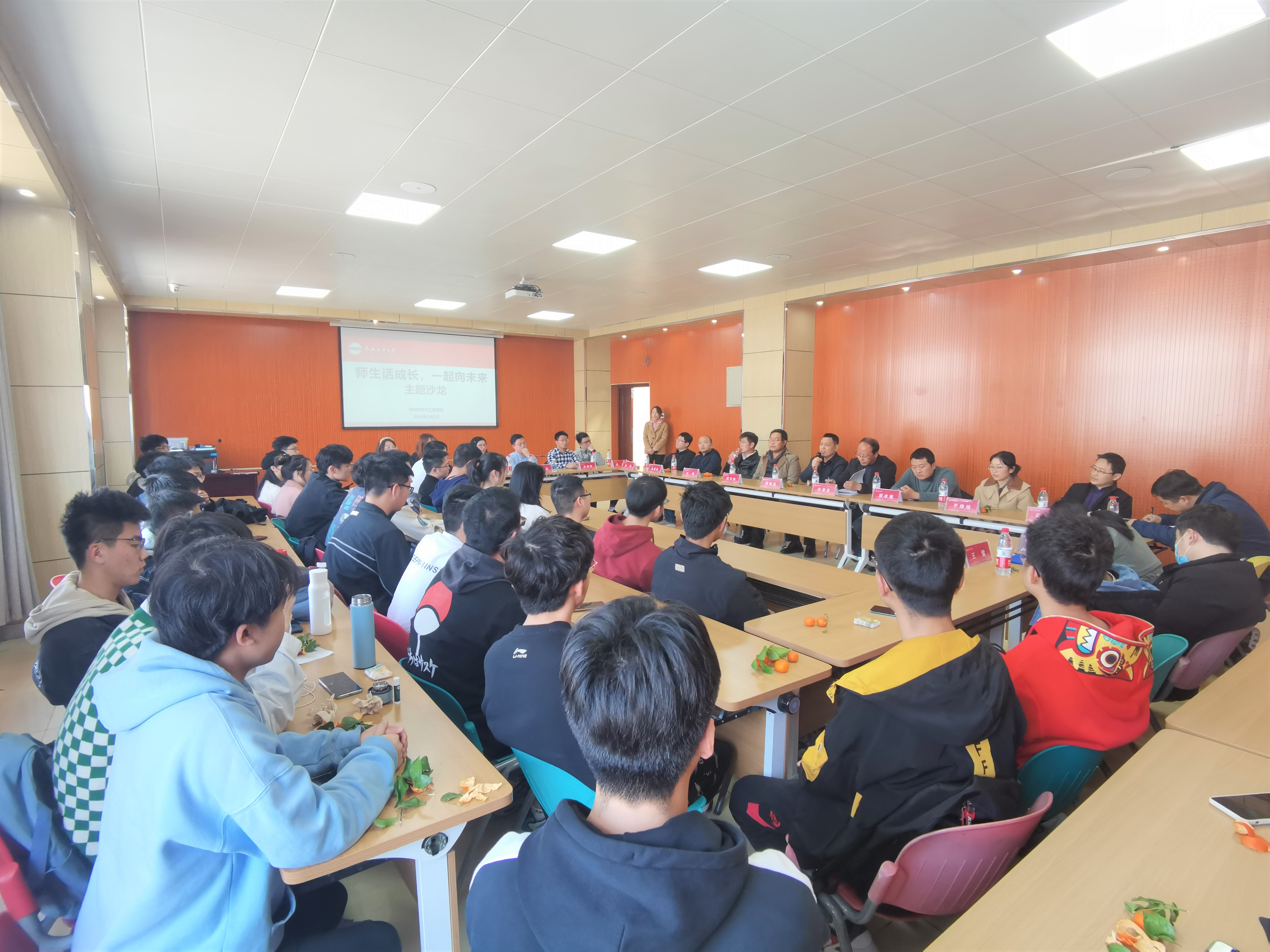 在综合楼302举办了“师生话成长,一起向未来”主题沙龙。材料物理及新能源材料与器件系全体教师和材料物理专业20-1班全体同学面对面,共话大学成长故事。