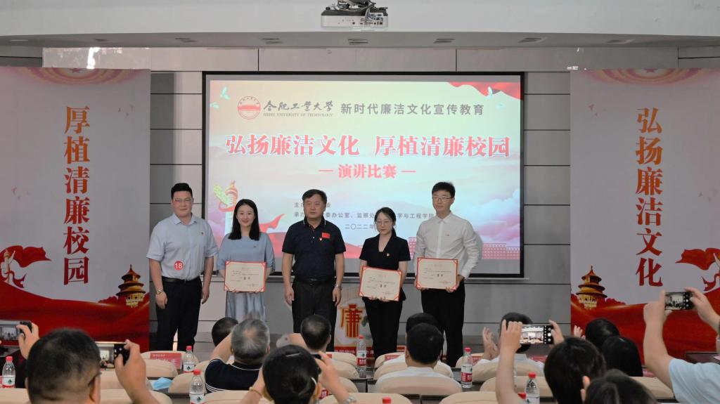比赛中,来自学校18个单位的师生依次登台演讲,选手们精神饱满、感情真挚、激情澎湃,他们紧密围绕本次演讲主题,充分展现我校师生积极向上的精神面貌,演讲内容立意深远,贴近实际,传递了清正廉洁的时代主旋律。其中,《禾下乘凉梦,一稻一人生》弘扬时代楷模丰功伟绩,歌颂以天下为己任的家国情怀;《廉洁修身——一生的功课》讲述感动中国先进人物感人事迹,传播廉洁助人社会正能量;《学党史廉政文化,树正义清廉之风》引经据典以史为鉴,传递清廉从政职业操守;《清风沐桃李,廉洁润人心》围绕校史,深入挖掘校内典型,深情讲述我国现代精度理论及工程应用的奠基人费业泰教授等生动感人、廉洁从教的奋斗故事;《让廉洁之花在用心服务中炫目绽放》通过身边人身边事,弘扬优良家风,坚守师德师风,传承服务师生的赤子之心。选手们的精彩表现让观众接受了深刻的廉洁文化洗礼,赢得了阵阵热烈的掌声。