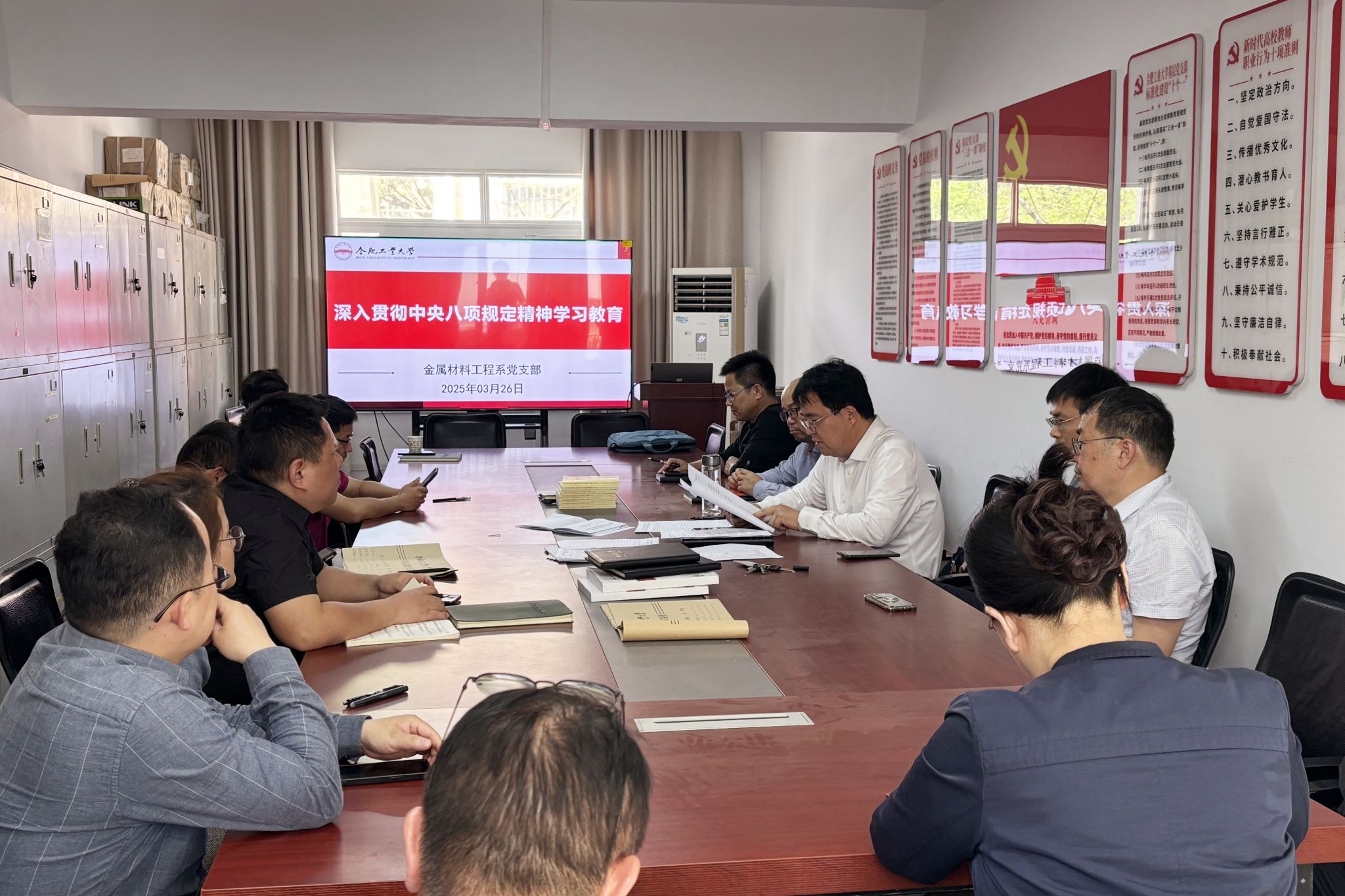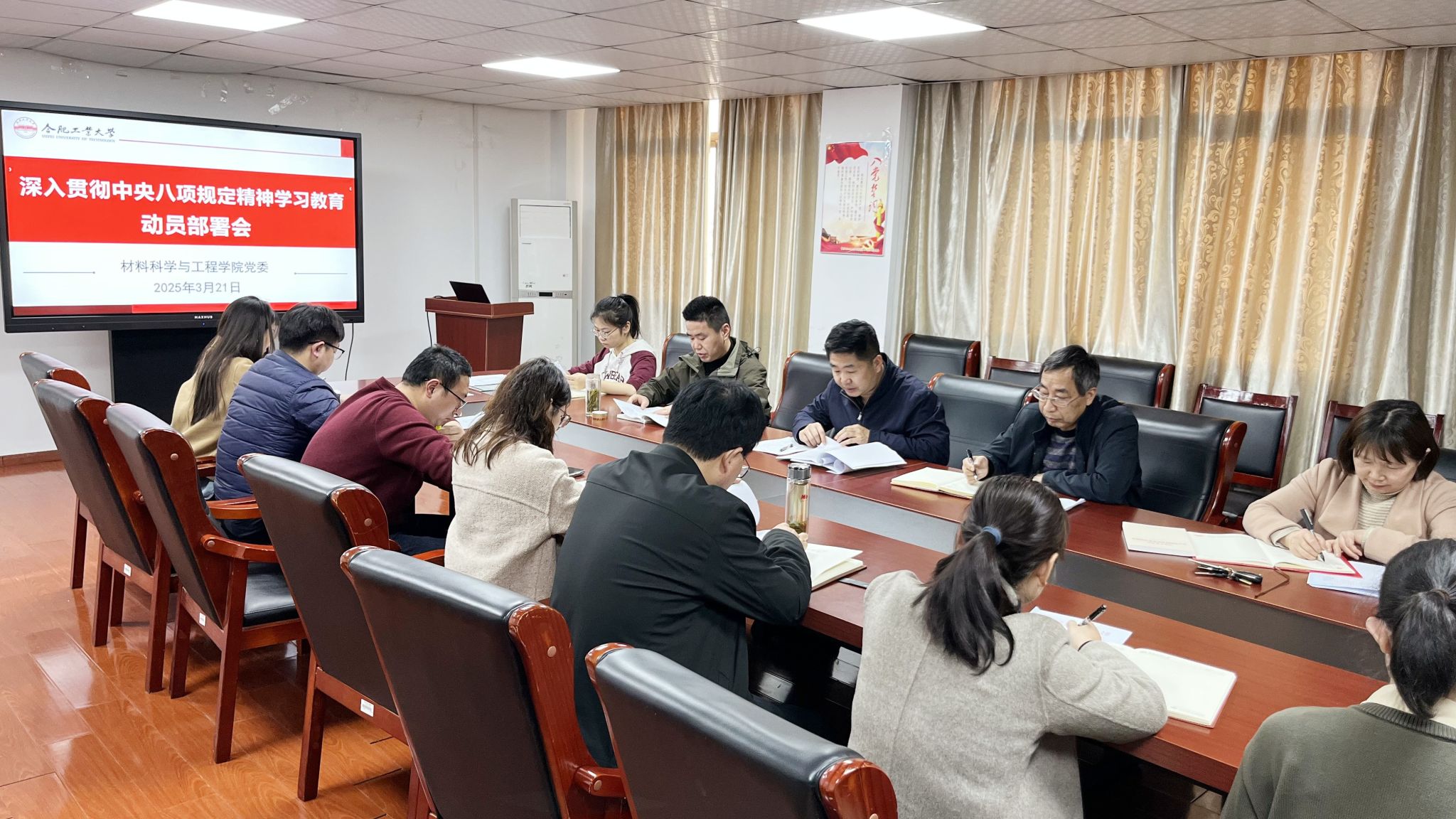 召开深入贯彻中央八项规定精神学习教育工作部署会,传达学习学校党委关于开展深入贯彻中央八项规定精神学习教育有关要求。学院党委书记武国剑主持会议。全体师生党支部书记、学生党支部指导老师参加会议。